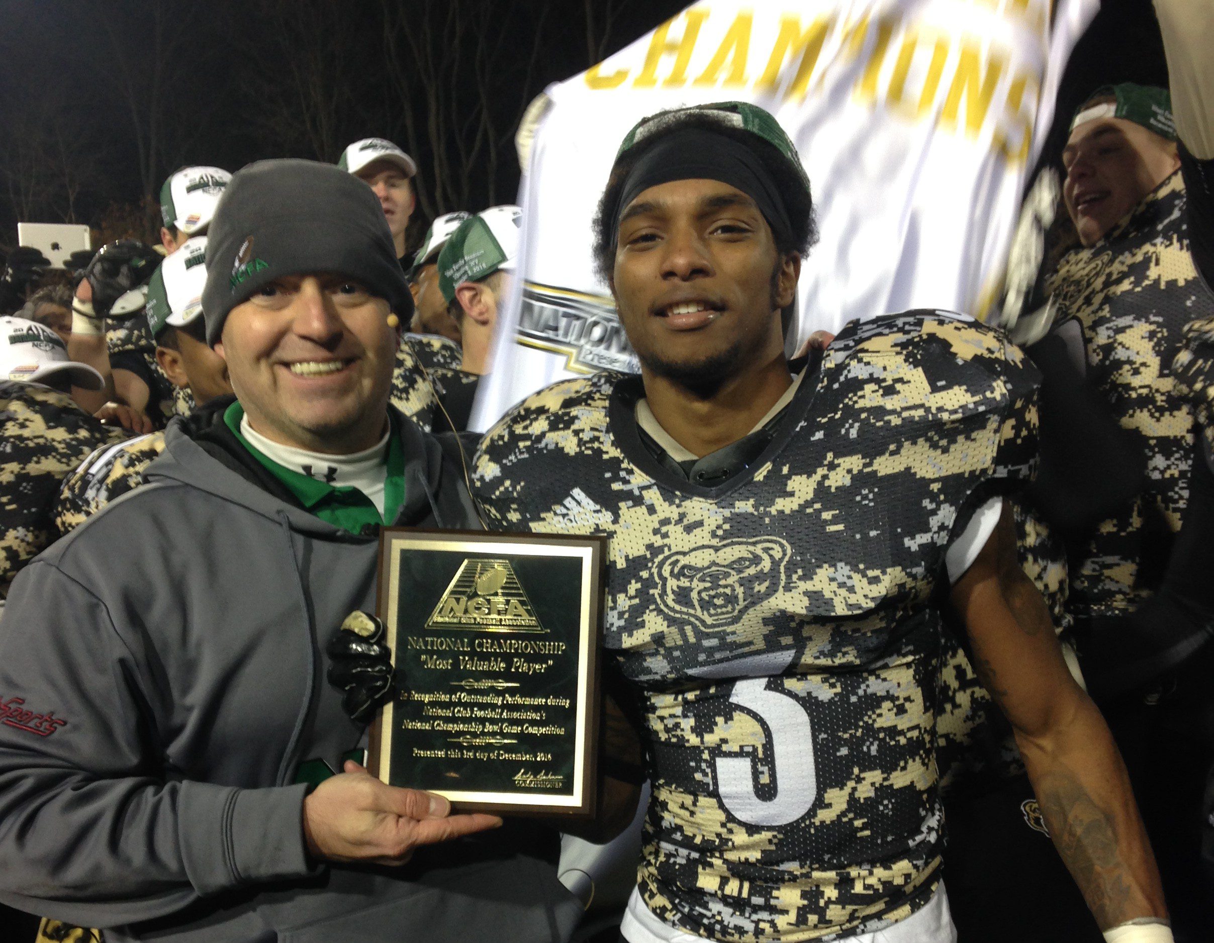 Shakeer Williams took home the MVP award at the NCFA National Title game when his 97 yard Pick-6 as time ran out in the first half turned the tables for Oakland and gave them the momentum to win the NCFA Championship.